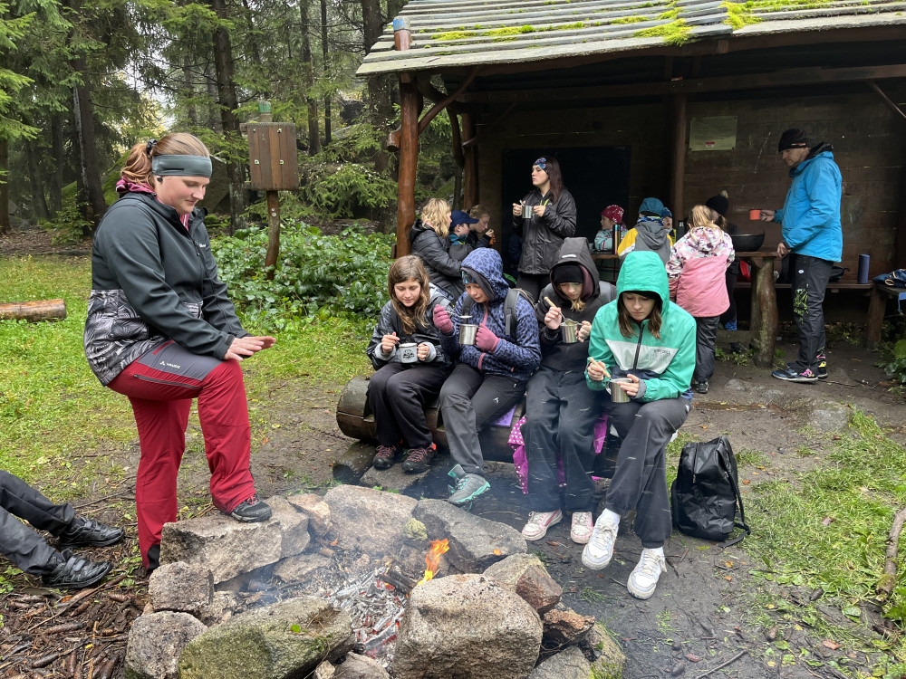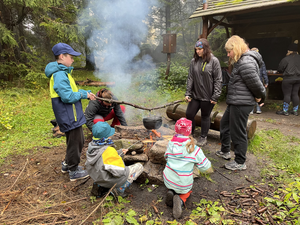 S sebou: svačinu, teplé pití, hrnek, vhodné teplé oblečení do přírody, dobrou pevnou obuv, pláštěnku, náhradní tričko a ponožky, něco na opečení na ohni, čepici.