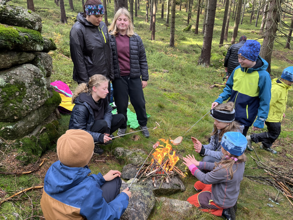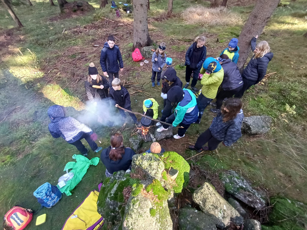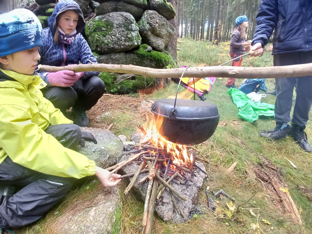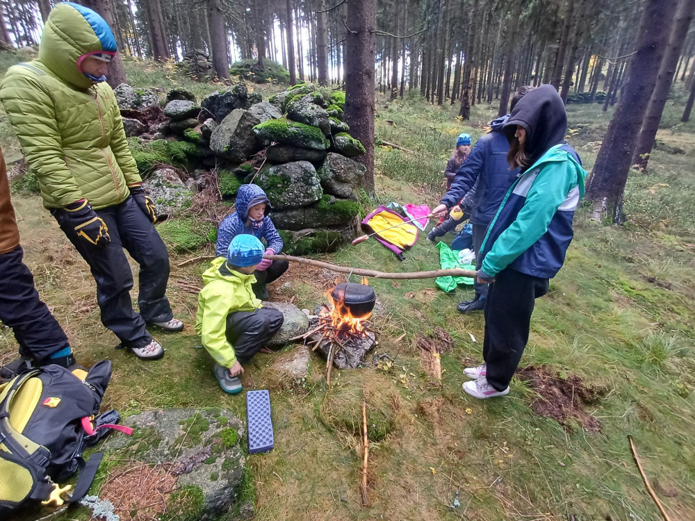 S sebou: svačinu, teplé pití, hrnek, vhodné teplé oblečení do přírody, dobrou pevnou obuv, pláštěnku, náhradní tričko a ponožky, něco na opečení na ohni, čepici, rukavice (i náhradní).